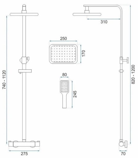 - Skład zestawu: Bateria, wąż prysznicowy ze słuchawką, deszczownica, uchwyt do słuchawki