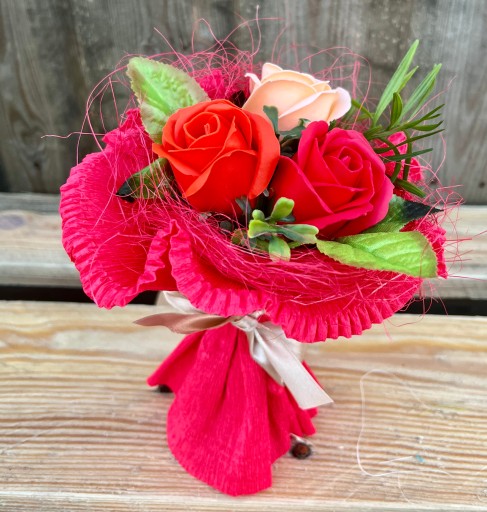 Otrzymujesz uroczy prezent gotowy do wręczenia! Mydlany bukiet zachwyci każdą kobietę swoim wyglądem i zapachem.
