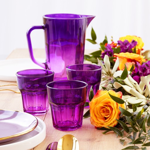 Zestaw szklanek Gigi Mysterious Twilight to idealne szkło do podawania różnego rodzaju napojów, w tym soku, wody czy orzeźwiających koktajli. Komplet składa się z barwionych szklanek o zachwycającym odcieniu fioletowym w tonacji ombre - od ciemniejszej, głębokiej tonacji fioletu na górze do jaśniejszej, delikatniejszej tonacji na dole. Szklanki nie tylko doskonale się sprawdzą na co dzień, ale również na różnego rodzaju imprezach czy uroczystościach, gdzie zachwycą swoim pięknym, fioletowym kolorem i nowoczesnym stylem. Dodatkowo, szklanki te są doskonałymi pucharkami na desery, idealne do podawania lodów czy innych słodkości. Aby stworzyć kompletną zastawę, warto również dokupić fioletowy dzbanek Gigi Mysterious Twilight, który idealnie dopasuje się do kształtu i koloru szklanek.