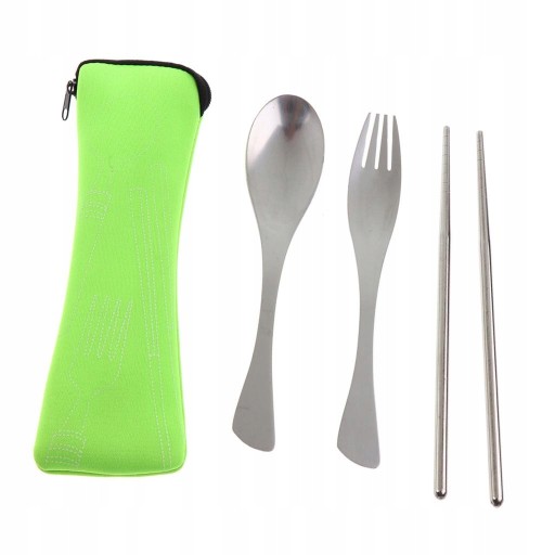 Jeden zestaw sztućców, w tym łyżka, widelec, pałeczki do jedzenia