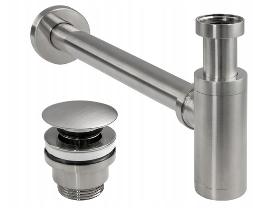 Syfon Umywalkowy z korkiem Klik-Klak NKIEL SZCZOTKOWANY