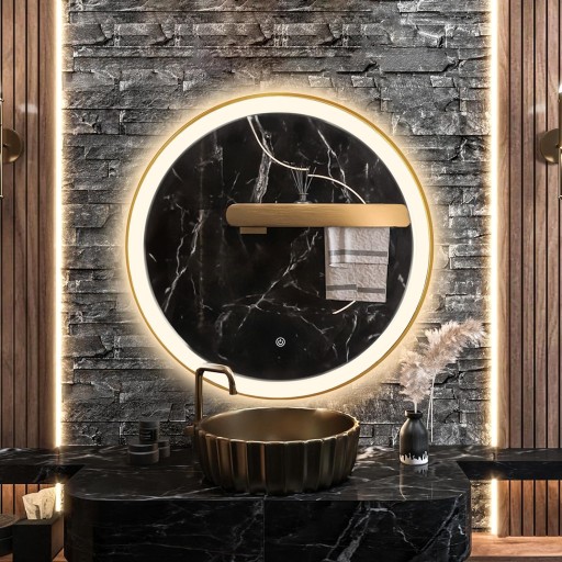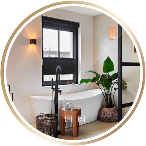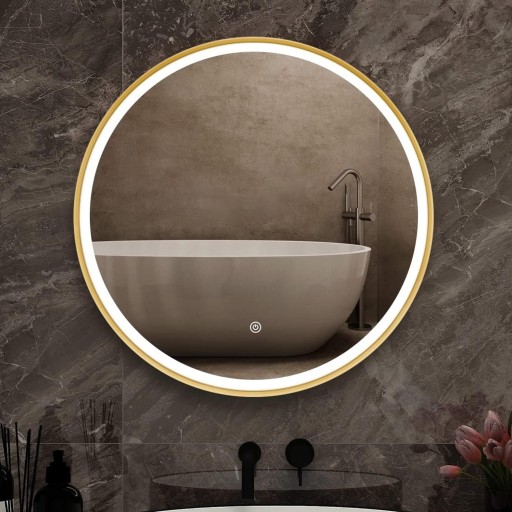 ЗЕРКАЛО ДЛЯ ВАННОЙ КОМНАТЫ ЗОЛОТАЯ РАМА СВЕТОДИОДНАЯ ПОДСВЕТКА КРУГЛАЯ 70см