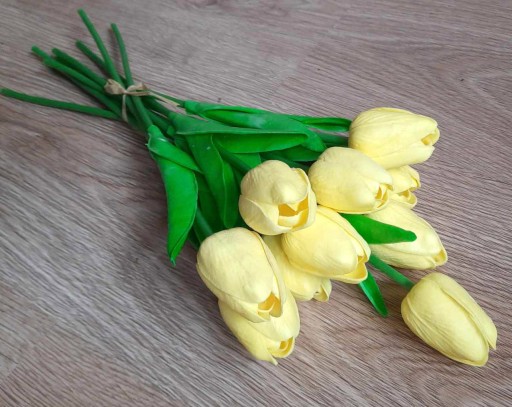 - Pojedynczy tulipan gumowany jest doskonałą dekoracją, wygląda jak żywy