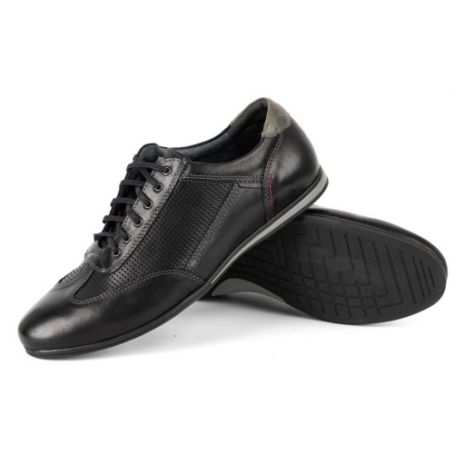 Buty męskie skórzane casual KAMPOL SPORT STYLE 64KAM czarne