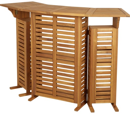 Drewniany barek jest idealny do serwowania napojów i zabawiania gości w ogrodzie. Barek otwiera się, odsłaniając półki do przechowywania ulubionych trunków, napojów, czy szklanek. Wykonany jest z naturalnego drewna akacjowego - trwałego i łatwego w utrzymaniu materiału, który jest wszechstronny i stanowi doskonały wybór do każdego stylu ogrodu, a nawet pokoju ogrodowego.