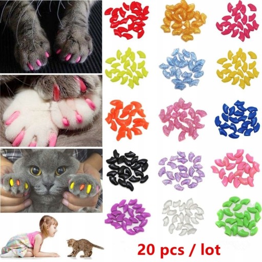 20 sztuk Anti- Scratch silikonowe miękkie kot nakładki na pazury/łapa kota pazur/paznokcie zwierząt domowych Protector/kot paznokci pokrywa z bezpłatnym klejem