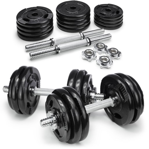 Skuteczność treningu z hantlami polega na możliwości dopasowania ciężaru do własnych potrzeb. Duża różnorodność krążków pozwala na stopniowe zwiększanie intensywności treningu.