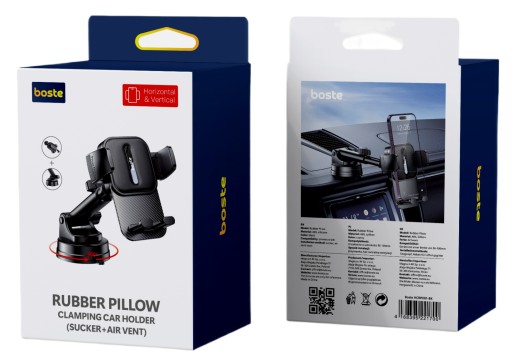 Minimalistyczny design i uniwersalna kolorystyka czarna sprawiają, że Boste Rubber Pillow Clambing Car Holder doskonale komponuje się z wnętrzem każdego samochodu, dodając mu nowoczesnego charakteru, nie odwracając jednocześnie uwagi od drogi.