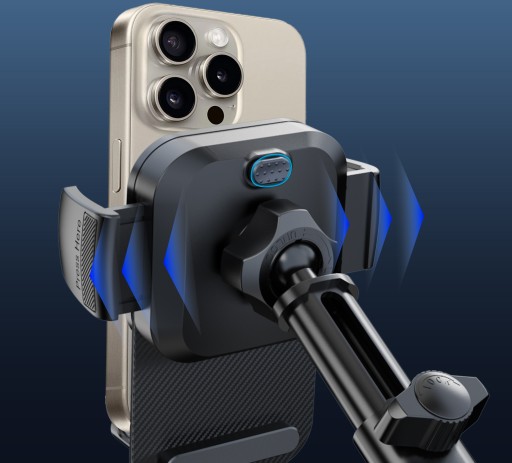 Uchwyt został zaprojektowany z myślą o maksymalnej wygodzie użytkownika. Regulowane ramie teleskopowe (16-21cm) oraz możliwość obrotu o 270° i 360° pozwalają na łatwe dostosowanie pozycji telefonu do indywidualnych potrzeb, zapewniając optymalny kąt widzenia. Ręczne zaciskanie bocznych ramion zapewnia mocne trzymanie telefonu, a zwalnianie uścisku za pomocą przycisku z tyłu umożliwia prostą i szybką obsługę.