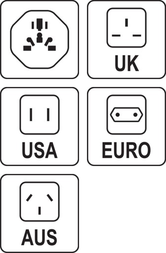 Napięcie sieciowe w większości krajów wykorzystujących standard gniazdka typ A, B oraz I różni się od standardu europejskiego. Adapter nie konwertuje napięcia sieciowego 230 V na 110 V. Urządzenia nie przystosowane do pracy w przedziale AC 100-250 V mogą nie działać poprawnie.