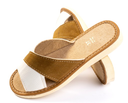 ТАПОЧКИ ЖЕНСКИЕ УЛИЧНЫЕ ТАПОЧКИ MAXIMUS бело-коричневые размеры 36-41