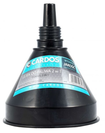 Lejek do paliwa CARDOS - próby wlania paliwa z kanistra do baku bez tego drobiazgu, mogą skończyć się totalnym zabrudzeniem rąk, ubrania, samego samochodu i oczywiście straty dużej części zawartości kanistra. Należy również pamiętać, że lejków do paliw i olejów używają również użytkownicy innych maszyn. Właściciel łódki z silnikiem zaburtowym czy użytkownik kosiarki spalinowej nie poradzą sobie z obsługą swoich maszyn bez takiego lejka. Dwuczęściowy, wykonany z odpornego tworzywa i nadający się zarówno do przelewania benzyny, jak i oleju napędowego. Elastyczna i odpowiednio długa rurka o długość 25 cm i fi od 10-40 mm zapewnia dojście do każdego typu wlewów i komfortowe warunki przelewania. Posiada również niezbędny filtr w postaci ściąganej siateczki, ponieważ nie można mieć pewności, że w czasie nalewania paliwa jakiekolwiek pyły czy osady nie dostaną się do zbiornika.