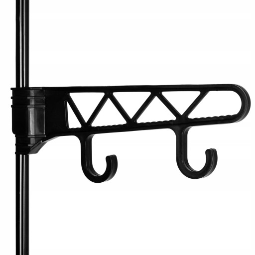 Dzięki dodatkowym uchwytom z haczykami możemy przechowywać jeszcze więcej akcesoriów i ubrań. Można regulować ich wysokość, dzięki czemu możemy ją dostosować do własnych potrzeb. Uchwyty przydadzą się do przechowywania szali, wiszących koszul, kapeluszy i wielu innych garderobianych akcesoriów. Uchwyty posiadają specjalne wyżłobienie na wieszaki, dzięki którym łatwiej przechowuje się wiszące ubrania.