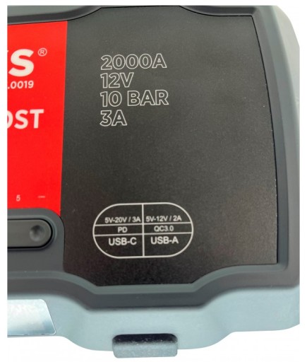 Dodatkowo urządzenie SUPER BOOST posiada aż 5 funkcji: rozruch silnika, pompowanie kół, lampę serwisową, POWER BANK oraz woltomierz do badania napięcia w akumulatorze.