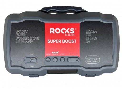 Booster ROOKS jest innowacyjnym urządzeniem, niezbędnym w uruchamianiu samochodów osobowych i dostawczych z silnikami diesla oraz benzynowymi o bardzo dużych pojemnościach (6000 i 8000 cm3). Dodatkowo booster ROOKS posiada wbudowany kompresor, który generuje ciśnienie aż 10 BAR. Dzięki temu doskonale sprawdza się przy uruchamianiu oraz kontroli ciśnienia w oponach w samochodach, które długo nie były używane.