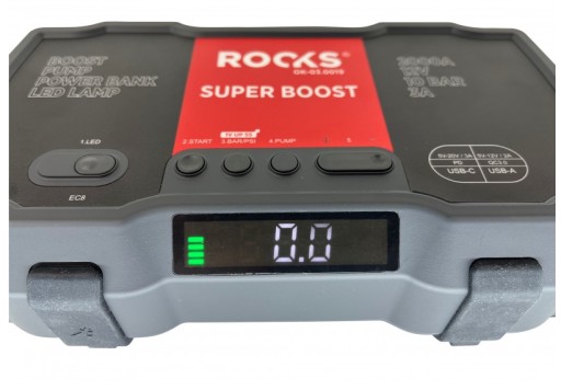 Doskonały booster który wspomaga rozruch samochodów z rozładowanym akumulatorem. Booster ROOKS dysponuje ogromnym prądem rozruchu, który osiąga w szczycie aż 2000 A oraz 1000 A w standardowym trybie pracy.
