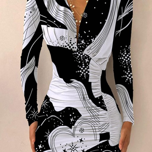 - Sukienka Slim Fit została zaprojektowana z fałdami, które są bardzo designerskie i są również popularnymi elementami. Wzornictwo lamparta jest bardzo modne i modne.
