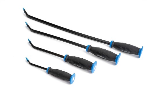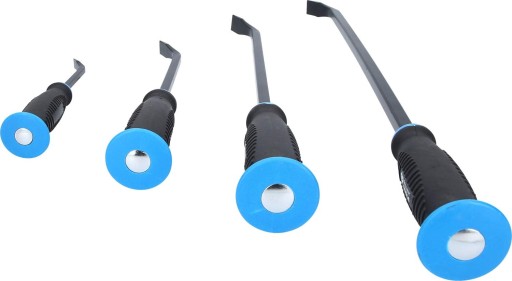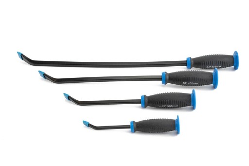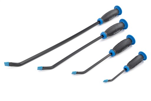 Wyprofilowane rękojeści pokryte wytrzymałym tworzywem PCV dla zapewniania odpowiedniego chwytu oraz zakończone kapturkiem umożliwiającym pobijanie. Posiadają kątowy wierzchołek, który oferuje dodatkowy punkt dźwigni dla pracy w wąskich obszarach, a zaostrzone końce z dużą łatwością wchodzą między złączone elementy.