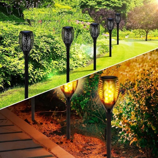 ⭐ ZESTAW 12x Pochodnia LED OGRODOWE LAMPY SOLARNE Z EFEKTEM PŁOMIENIA⭐