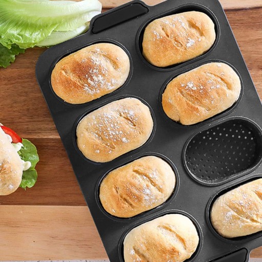 ✓ Wymiary wewnętrzne pojedynczego wgłębienia na bułkę: 9,5 cm x 6,5 cm x 3 cm