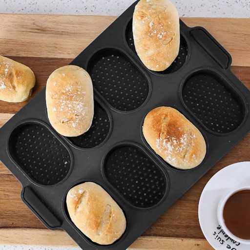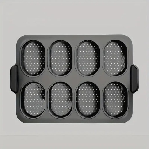 БОЛЬШАЯ СИЛИКОНОВАЯ ФОРМА НА 8 БУЛОЧЕК ПЕРФОРИРОВАННЫЙ ПРОТИВЕНЬ С АНТИПРИГАРНЫМ ПРОТИВНИКОМ