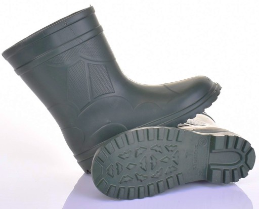 Buty sąz tworzywa EVA (pianki), są bardzo lekkie i łatwe w czyszczeniu. Nie pękają i nie odbarwiają się. Można je użytkować latami. Buty posiadają zaprojektowane unikatowe bieżniki, dzięki którym podeszwa nie ślizga się. Buty są bardzo wytrzymałe, wykonane z najlepszych materiałow. Kalosze produkowane z w Polsce.