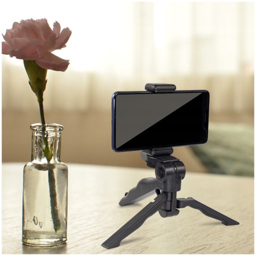 ✔️ Wygodny - mały statyw stołowy oraz (po złożeniu) wyprofilowany i ergonomiczny uchwyt ręczny typu GRIP.