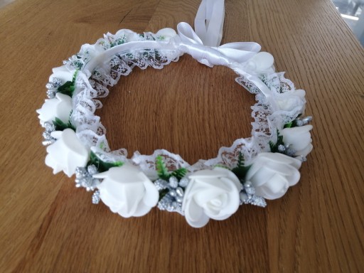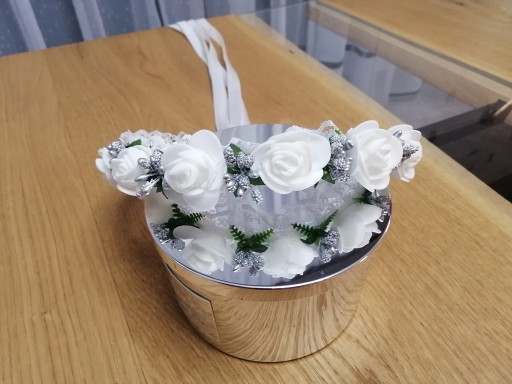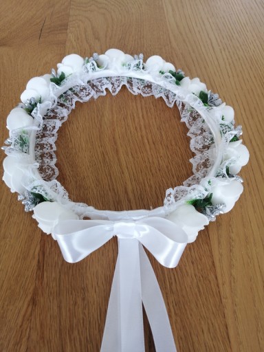 Delikatny wianek komunijny ze srebrnymi dodatkami.