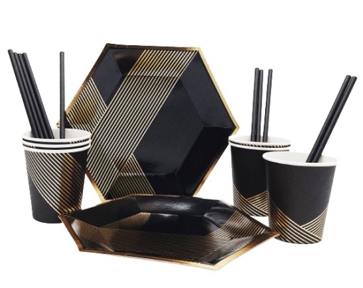 ZESTAW CZARNY GLAMOUR TALERZYKI KUBECZKI ZASTAWA JEDNORAZOWA