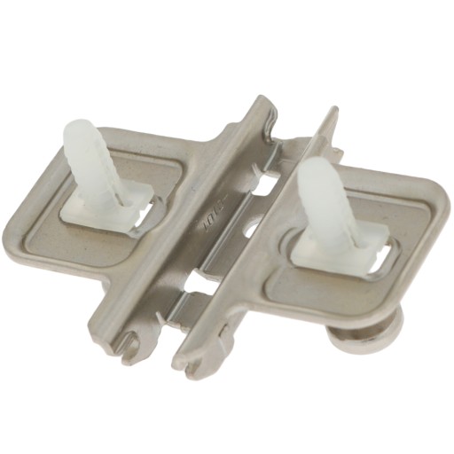 Prowadnik krzyżowy BLUM 174E6100 EXPANDO o dystansie 0 mm i wysokości 8,5 mm. Montaż tego modelu odbywa się przy użyciu dodatkowych kołków rozporowych, które stabilizują prowadnik.