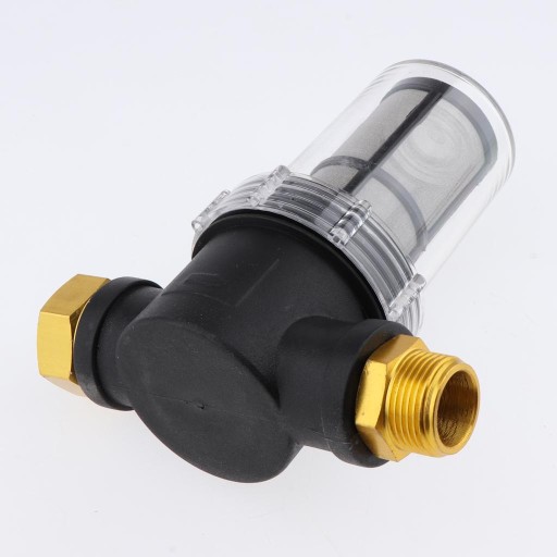 Zaprojektowany do filtrowania wody wypływającej z kranu do węża ogrodowego, aby zapobiec uszkodzeniu pompy myjki ciśnieniowej przez zanieczyszczenia