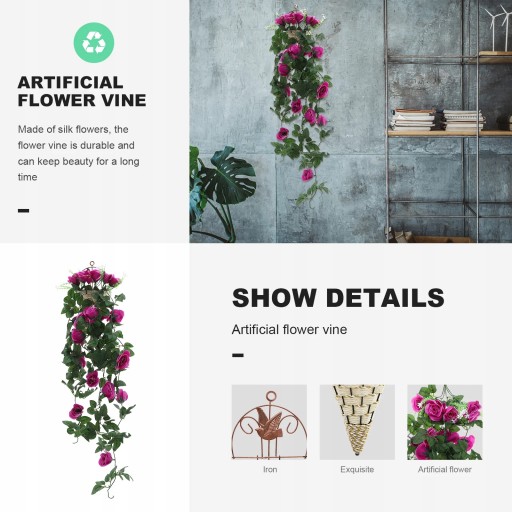 Dzięki wiszącemu koszowi możesz zawiesić winorośl na ścianie, huśtawce, kawiarniach, restauracjach i przejściach, aby stworzyć idealny wygląd.