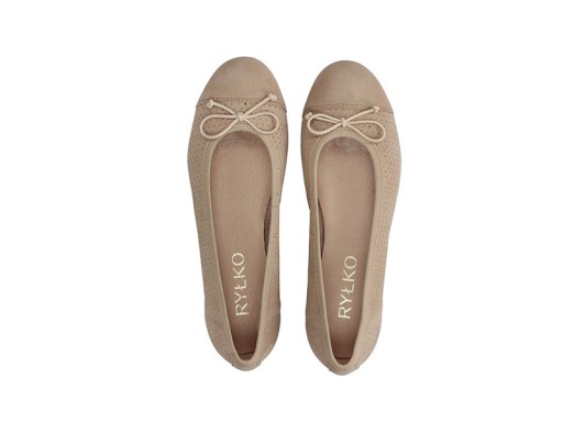 Baleriny Ryłko P1MZ4 welurowe - Kol. beżowy, Roz. 40