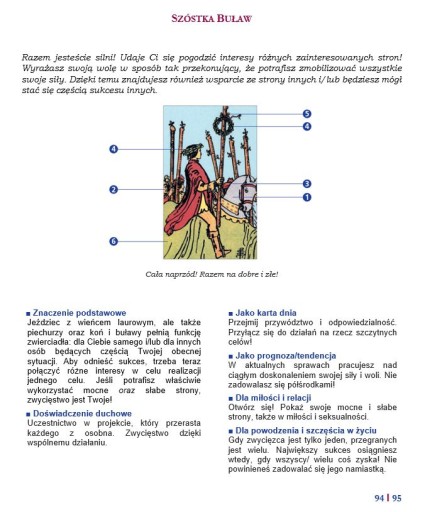 TAROT Podstawy książka:Ksia?zka ta stanowi obszerne opracowanie, a tym samym doskonałe wprowadzenie w swiat klasycznego tarota autorstwa A.E. Waitea i Pameli Colman Smith. Johannes Fiebig i Evelin Burger przedstawiaja? dla kazdej karty pre- cyzyjny opis 10 symboli. Pozwala to na szczegołowe od- szyfrowanie złozonych poziomow znaczeniowych, kolo- rystyki i kształtow obrazow poszczegolnych kart. Dzie?ki tej wiedzy mozliwe jest odkrycie prostej, obrazowej sciez- ki do tarota.Dodatkowo autorzy zgłe?biaja? podstawowe znaczenie kaz- dej karty, mozliwosci doswiadczenia duchowego, a takze zagadnienia dotycza?ce miłosci/ relacji, sukcesu i szcze?scia.Ksia?zke? dopełnia 10 najwazniejszych zasad interpretacji, 10 najpie?kniejszych wzorow rozkładu, 10 najpopularniej- szych rozkładow z jedna? karta? i 10 najbardziej ekscytuja?cych wskazowek.TAROT PodstawyDOWIEDZ SIE? WSZYSTKIEGO, CO ZAWSZE CHCIAŁES WIEDZIEC NA TEMAT NAJPOPULARNIEJSZEJ TALII TAROTA NA SWIECIENiniejszy zestaw zawiera ksia?zke? Tarot Podstawy oraz 78 klasycznych kart tarota stworzonych przez A.E. Waitea i Pamele? Colman Smith. W ksia?zce Tarot Podstawy znajdziesz wiele informacji na te- mat dziesie?ciu najwazniejszych symboli znajduja?cych sie? na kartach, a takze setki ilustracji ułatwiaja?ce korzystanie z talii. Ponadto kazda? karte? opatrzono krotka? interpretacja?, w ktorej uwzgle?dniono ponizsze zagadnienia:Znaczenie dla miłosci, zwia?zkow i relacjiKarta dniaZnaczenie dotycza?ce powodzenia i szcze?sciaPodstawowe znaczeniePrognoza lub tendencjaDoswiadczenie duchoweKsia?zka została wydana w pore?cznym formacie, ułatwiaja?cym odwoływanie sie? do zawartych w niej informacji na bieza?co. Autorzy, Johannes Fiebig and Evelin Burger, to znani w Europie specjalisci od tarota; dzie?ki ich wskazowkom, poradom oraz przytaczanym faktom i przekazom ludowym be?dziesz w stanie szybko poprawic jakosc swoich odczytow. W ksia?zce tej znajdziesz tez m.in. dziesie?cnajwazniejszych:Rozkładow z jedna? karta?Zasad interpretacjiInformacji o tarocieInterpretacji dla kazdego koloruRozkładow kart