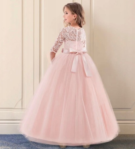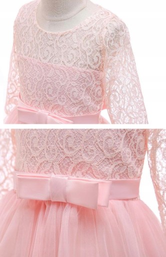 - w pasie ozdobna satynowa kokardka, z tyłu wiązanie na kokardkę.