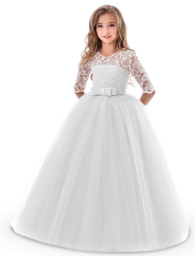 - w pasie ozdobna satynowa kokardka, z tyłu wiązanie na kokardkę.