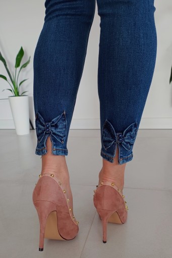 MODNE SPODNIE JEANSOWE Z OZDOBNYMI KOKARDAMI