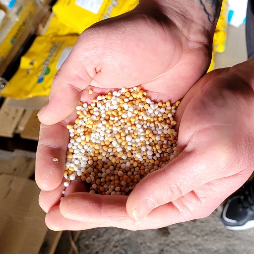 Nawóz jest mieszanką powlekanych i niepowlekanych surowców.