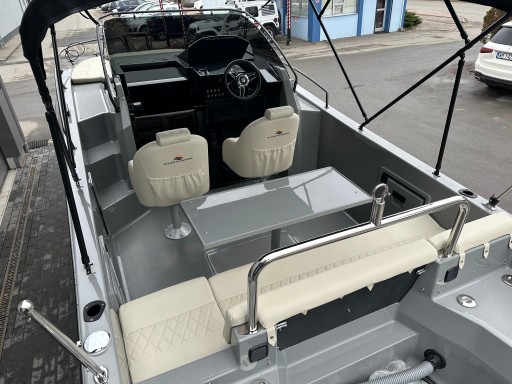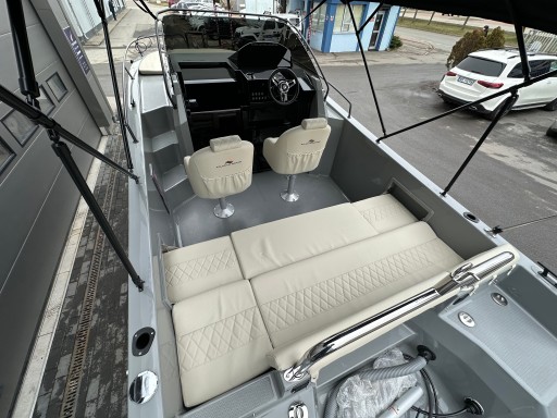 Oferujemy nową łódź motorową Atlantic Marine 730 Sun Cruiser w kolorze szarym RAL 7037 z prezentowanym wyposażeniem (bez silnika) z nową przyczepą podłodziową PP-3000 z 2 osimi, z łożami, ładowność 2450 kg.