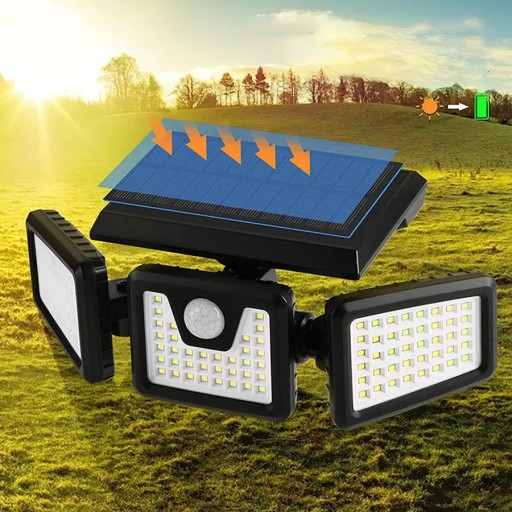 POTRÓJNA LAMPA SOLARNA Z CZUJNIKIEM RUCHU I ZMIERZCHU I 3 TRYBAMI ŚWIECENIA