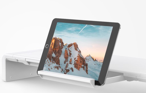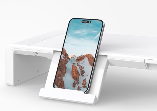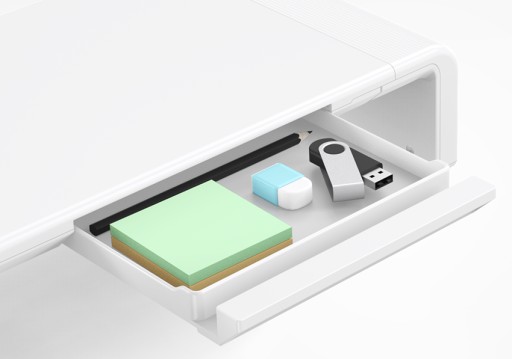 Ten stojak na monitor jest wyposażony w ukryty, wbudowany uchwyt na tablet/telefon oraz szufladę do przechowywania. Wszystkie niezbędne urządzenia elektroniczne i artykuły biurowe są doskonale zorganizowane, tak aby można je było łatwo przeglądać i do nich sięgać.
