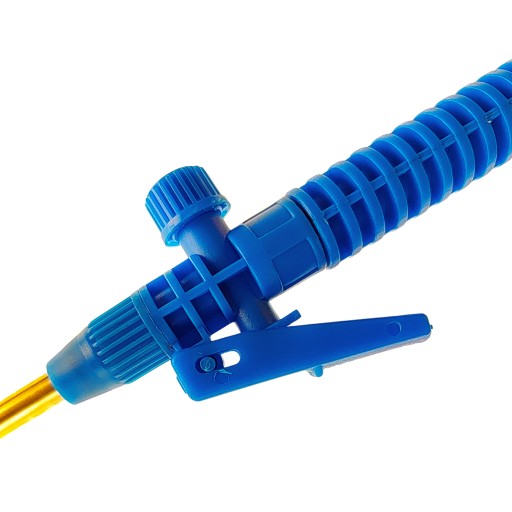 ✅Ciecz wypływa przewodem do pistoletu, później metalową lancą rozpyla się przez dyszę.