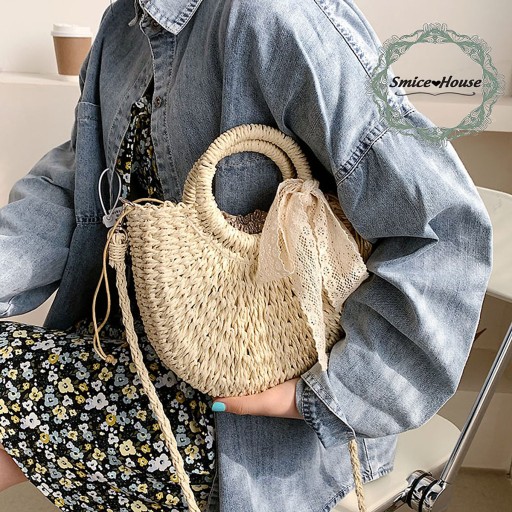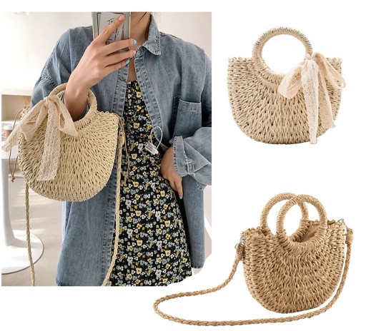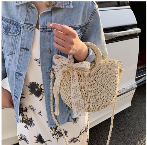 ZGRABNY LETNI KOSZYK, TOREBKA PLECIONA NA WIOSNĘ/LATO Z KOKARDĄ