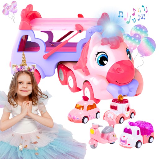 НАБОР ТРАНСПОРТНОГО СРЕДСТВА «ЕДИНОРОГ РОЗОВЫЙ ЭВАКУАТОР СО СВЕТАМИ И ЗВУКАМИ»