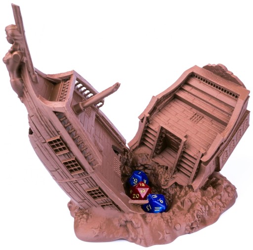 Ta wieża do gry w kości jest nie tylko funkcjonalna, ale także atrakcyjna wizualnie. Jego unikalny design inspirowany jest zatopionymi statkami pirackimi ze złotej ery piractwa. Wieża do Kości Zatopionego Statku Pirackiego to świetny sposób na rozpoczęcie rozmowy i z pewnością zrobi wrażenie na znajomych i innych graczach.
