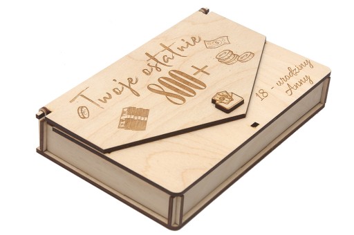 Drewniane personalizowane pudełko na pieniądze , koperta TWOJE OSTATNIE 800+