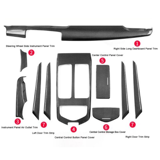 6. Ten zestaw do wykończenia wnętrza samochodu zawiera łącznie 10 sztuk wewnętrznego panelu drzwi, panelu deski rozdzielczej i panelu konsoli, może zapewnić jednolity styl całego wnętrza.