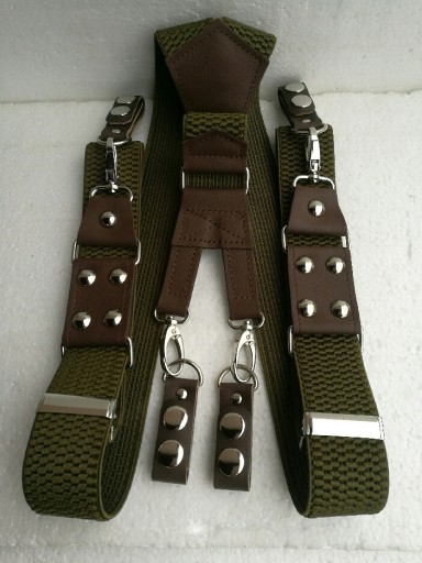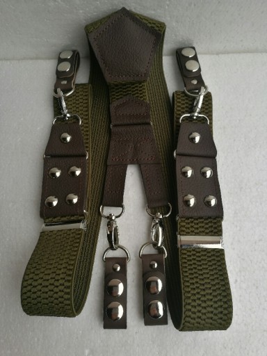 WYKONANE Z DOBREJ JAKOŚCIOWO GUMY SZELKOWEJ.POSIADAJĄ REGULACJĘ DŁUGOŚCI A SOLIDNE SZLUFKI DOBRZE UTRZYMUJĄ SPODNIE NA PASKU.BOJÓWKI ZAPINANE NA DWIE NAPY.WSTAWKI WYKONANE SĄ Z WYSOKO GATUNKOWEJ SKÓRY LICOWEJ KOLORU BRĄZOWEGO DZIĘKI TEMU SZELKI BĘDĄ SŁUŻYŁY PRZEZ DŁUGI CZAS.SREBRNY KOLOR METALOWYCH,RAMEK,NAPY,REGULATORÓW,NIT BĄBKA 11 MM.GUMA SZEROKA NA 4 CM.ROZCIĄGAJĄCA SIĘ NA 160 CM.SZLUFKI SKÓRZANE PASUJĄ NA SZEROKOŚĆ PASA DO 4 CM.