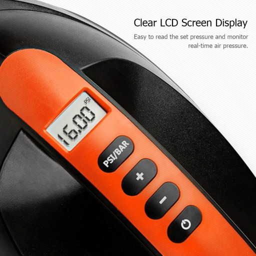 Ta jednostopniowa inteligentna pompa elektryczna 12V DC jest wyposażona w sterowanie cyfrowe i ekran LCD do wyświetlania ustawionego ciśnienia i ciśnienia powietrza w czasie rzeczywistym. Pompa może automatycznie zatrzymać pompowanie przy ustawionym wcześniej ciśnieniu powietrza. Wyposażona w 6 dysz, które pasują do większości materacy powietrznych, pontonów, namiotu, desek wiosłowych itp.