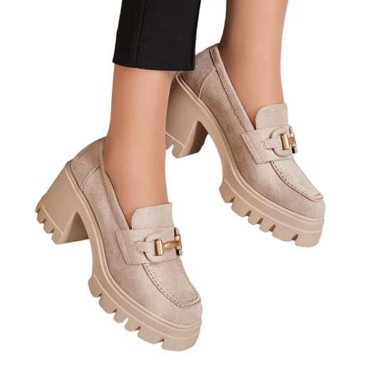 BEŻOWE MOKASYNY DAMSKIE NA SŁUPKU TIVILI
